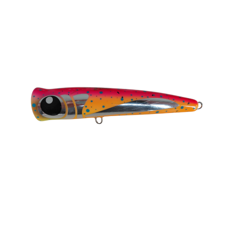 Its streamlined profile ensures long, accurate casts, while its popping action produces strong bubble trails and splashes, perfect for attracting tuna, GTs, and other topwater hunters.
